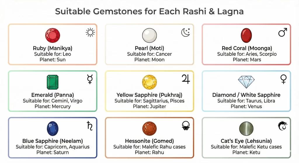 Let’s explore how to choose the correct lagna ratna (gemstone by ascendant) in a simple and practical way.